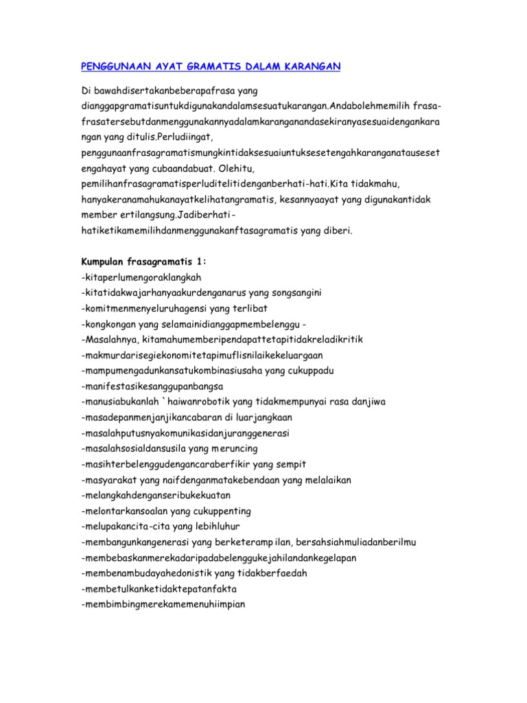 . Frasa Gramatis Dalam Karangan. Oleh itu pemilihan frasa gramatis perlu diteliti dengan berhati-hati. Penggunaan Ayat Gramatis Dalam Karangan.